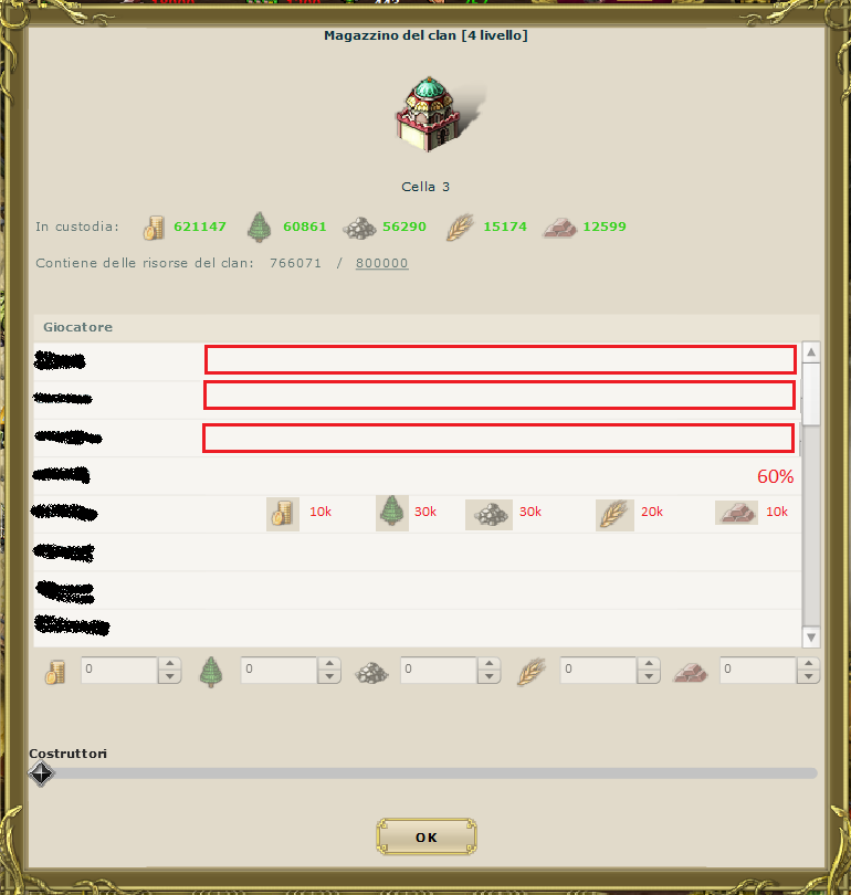 che dite se dentro il magazzino del clan ad ogni membro accanto al nome (nell'immagine la ho evidenziata di rosso) inserire quante risorse ha portato al clan azzerandosi ogni svuotamento del megazzino, e se non volete mettere tutte le risorse mettete una percentuale (ad esempio pincopallino 45% )