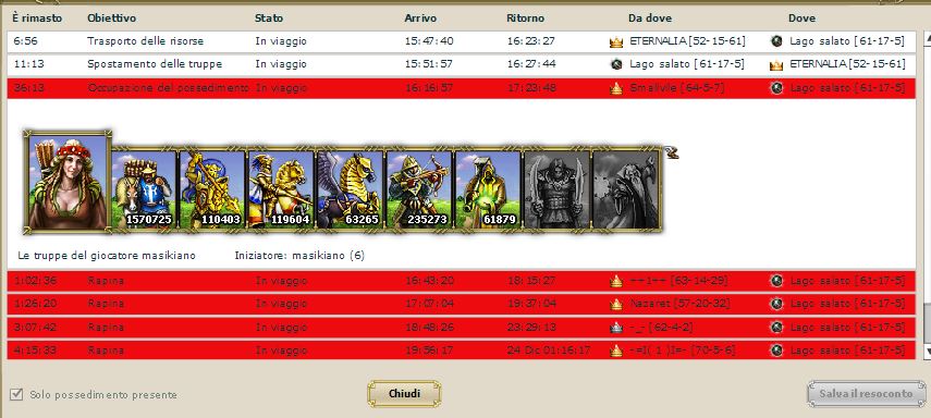 l'attacco è sul lago,non su te Massi, tu hai preso lago dopo che lui lo ha assediato, quindi il tempio non vale;ciprian ha scritto:il portatore ha oltre 2 ore,2 ore e 25 minuti per la precisione, potrebbe essere partito anche 3 ore prima,quindi l'attacco è sul lago non su sadex percui il tempio non lavora